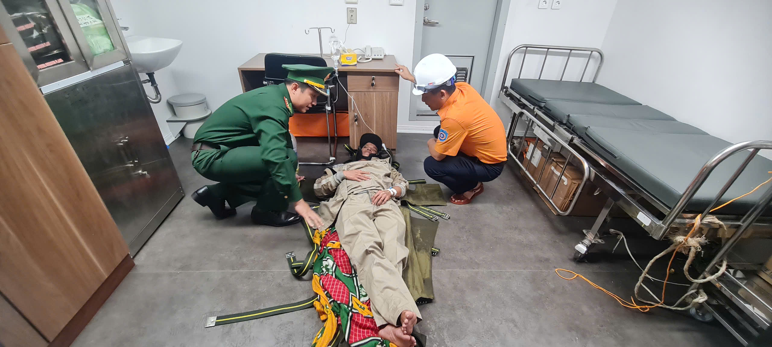 Bệnh nhân được chuyển đến Buồng y tế trên tàu SAR 631 để sơ cấp cứu