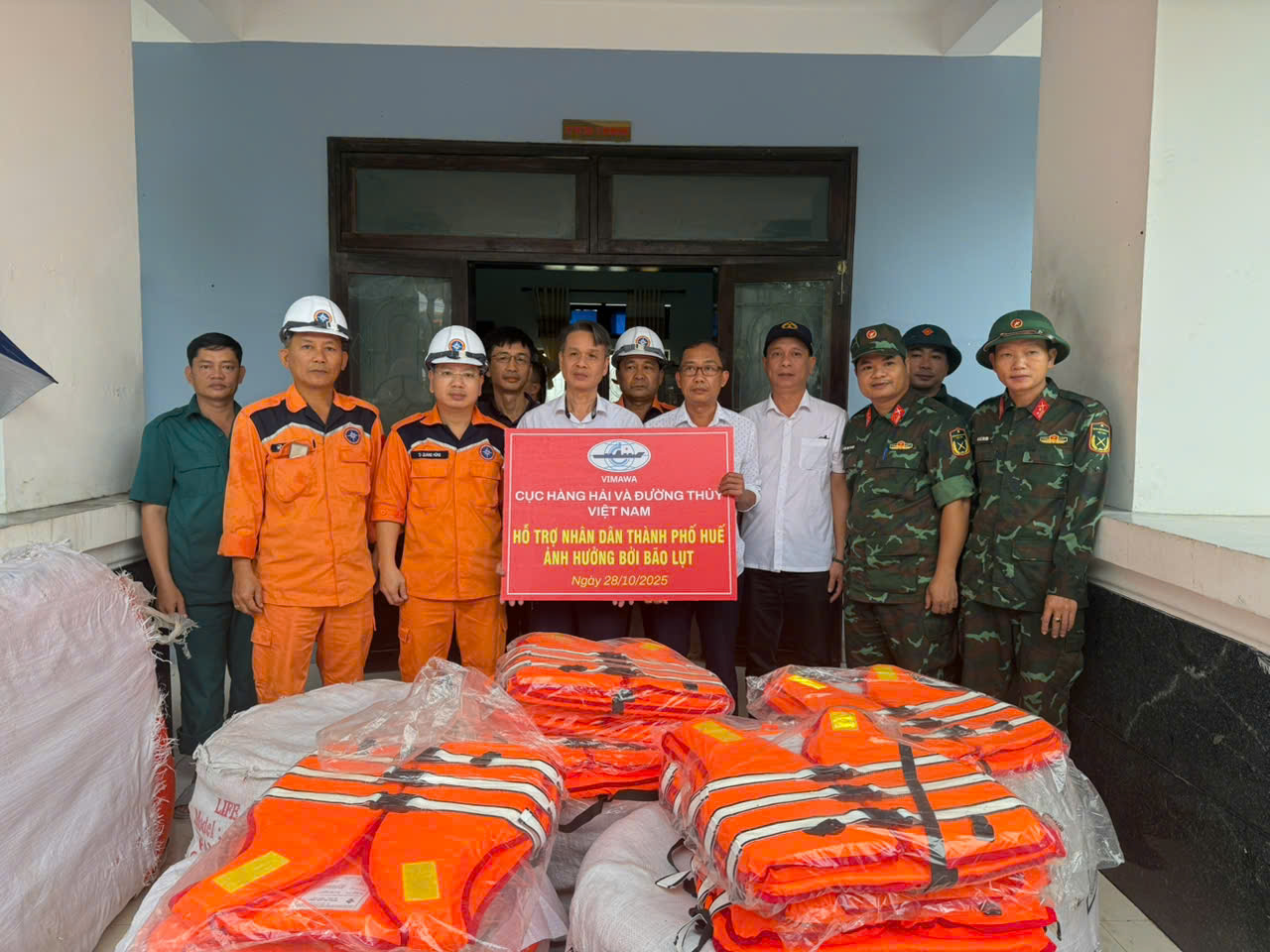 Nhận định tình hình mưa lũ kéo dài và mang tính nghiêm trọng, ngày 28/10/2025, Cục Hàng hải và Đường thủy Việt Nam đã tổ chức đoàn công tác đến thành phố Huế để phối hợp với UBND thành phố hỗ trợ ứng phó với mưa lũ. Tại địa phương, theo chỉ đạo của đồng chí Cục trưởng Lê Đỗ Mười, Trung tâm Phối hợp tìm kiếm, cứu nạn hàng hải Việt Nam đã xuất kho hàng dự trữ quốc gia để cấp cho các xã, phường thuộc TP. Huế 100 áo phao và 06 phao bè chuyên dụng cho lực lượng cứu hộ, 400 phao tròn cá nhân cung cấp cho các nhà dân bị ngập lụt. Các địa điểm nhận được đợt hỗ trợ này bao gồm: