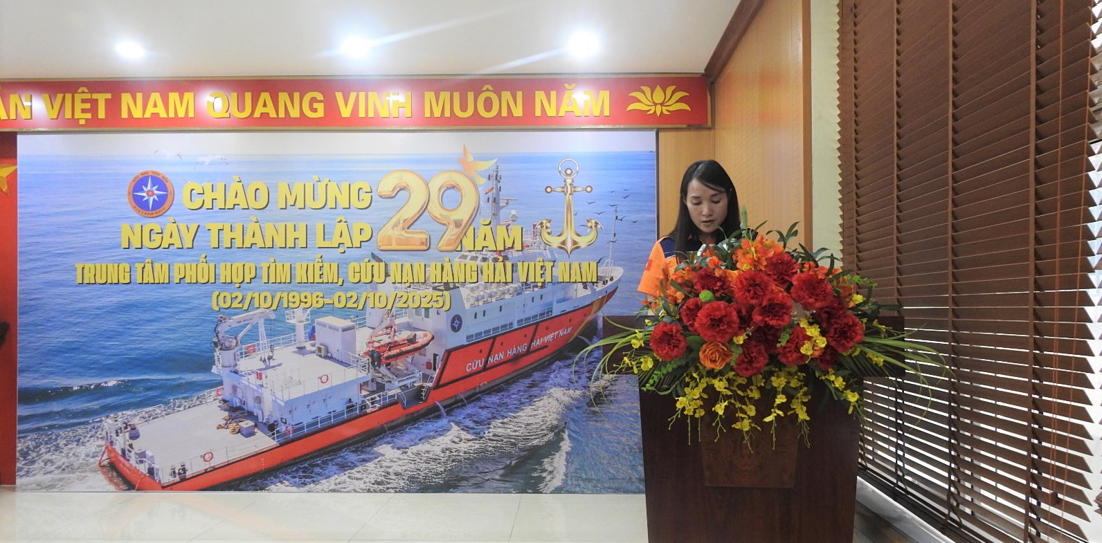 Ngày 02/10/2025, tại Hà Nội, Trung tâm Phối hợp tìm kiếm, cứu nạn hàng hải Việt Nam (Trung tâm) đã long trọng tổ chức Lễ kỷ niệm 29 năm Ngày thành lập Trung tâm (02/10/1996-02/10/2025) do đồng chí Bùi Văn Minh, Bí thư Đảng ủy, Tổng Giám đốc Trung tâm chủ trì. Tham dự buổi lễ, có các đồng chí Phó Tổng Giám đốc Trung tâm, lãnh đạo các tổ chức giúp việc Tổng Giám đốc cùng toàn thể viên chức, người lao động tại Văn phòng Trung tâm.