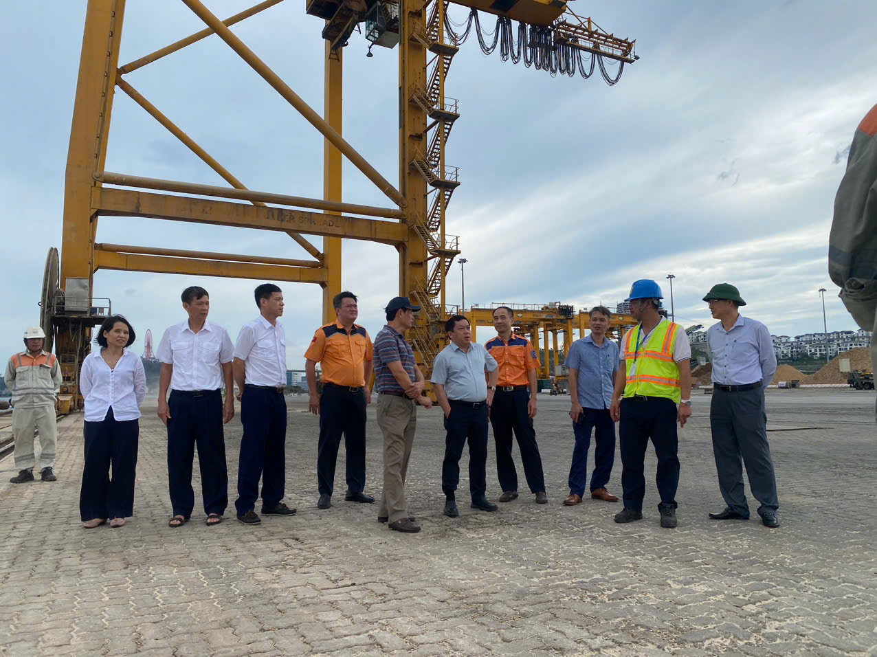 Tại khu vực cảng Lạch Huyện (Hải Phòng), đoàn công tác kiểm tra thực tế tình hình neo đậu tàu hàng, yêu cầu các doanh nghiệp khai thác cảng triển khai phương án đảm bảo an toàn trước trong và sau bão.