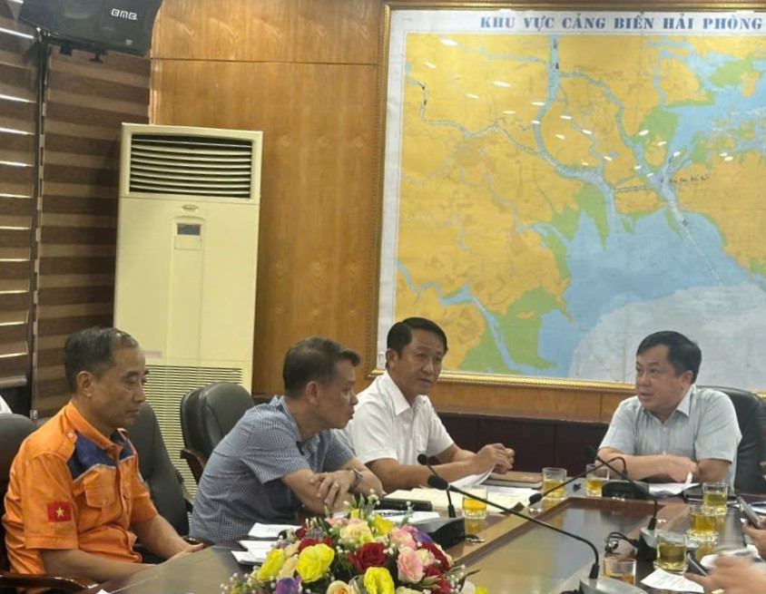 Phó Cục trưởng Hoàng Hồng Giang chủ trì cuộc họp kiểm tra công tác ứng phó bão số 11 tại Cảng vụ Hàng hải Hải Phòng.